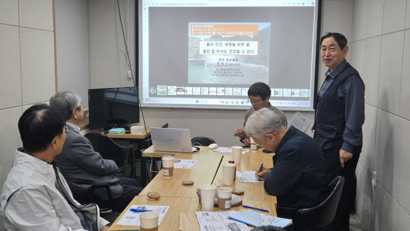 2025년 10월 23일 오전, 서울 사당역 인근 회의실에서 열린 한국에코과학클럽의 정기 포럼에서 류재근 회장(전 자연환경보전협회 회장, 전 국립환경과학원 원장)이 ‘물과 건강’을 주제로 발표를 진행했다.